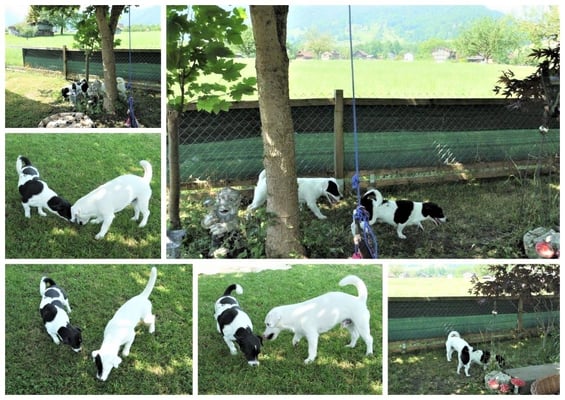 Sie war einfach von der ersten Sekunde an verliebt. Es war buchstäblich LIEBE AUF DEN ERSTEN BLICK. Selbst wenn Romeo nichts von ihr hätte wissen wollen - da war kein Entkommen. Mit überschwänglicher Freude stürzte sie sich förmlich auf ihn. Sie spielten und rannten um die Wette. bis Romeo wieder nach Hause musste. Es war einfach wunderschön.
