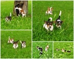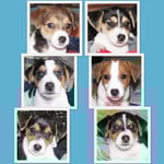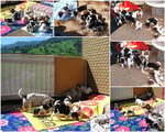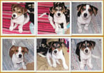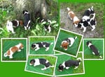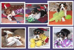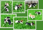 6. Welpe Junge Tricolor, geboren um 11.25 Uhr, Gewicht 230gr. Fotos links von 18.15 Uhr. Mitte vom 19.07.13, 2 Tg. jung, Gew. 290gr. Rechte Collage vom 22.07.13 5 Tage und 393gr.