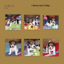 Links mit 1 Woche und 455gr. heisse Dexter. Mitte 12 Tage 29.07.13, habe die Augen offen und wiege 595gr. Rechte Collage vom 02.08.13, hebe das Köpfchen mit 16 Tg. u. bin 740gr.