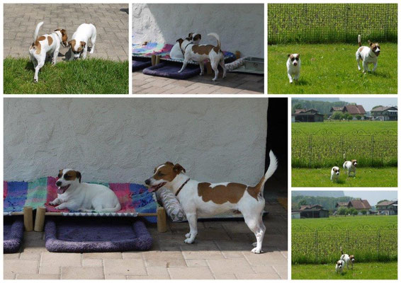 Nach ausgiebigem erschnüffeln von Mylo im zu Hause von Queenie, stand Grace mit Blick in die Ferne vor dem Wasserfall, als er angerannt kam, hui ui uiiiiiiiiiii. Nach kurzem Beschnuppern gab es kein Halten mehr. Über die Wiese hüpfen und wer ist wohl schneller, genossen sie zusammen ihr Spiel im Garten.