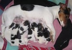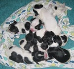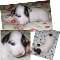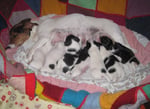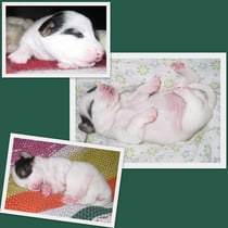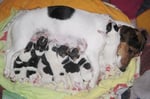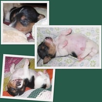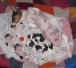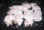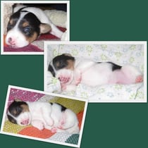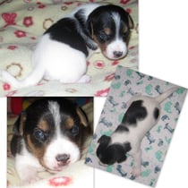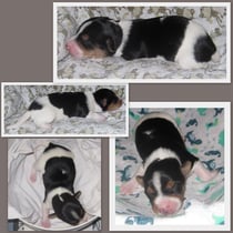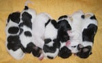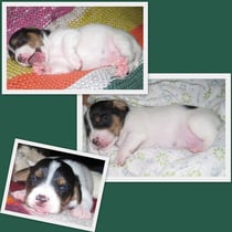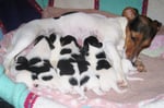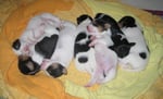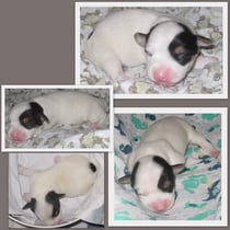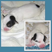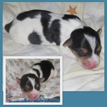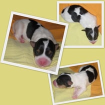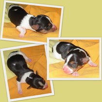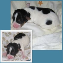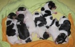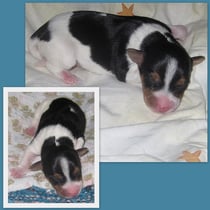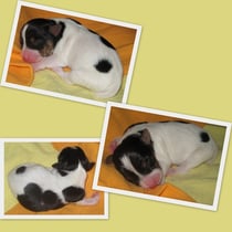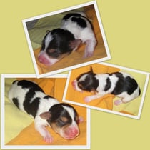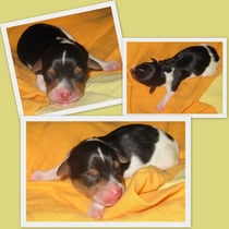 7. Welpe Junge Tricolor, geboren um 02.20 Uhr, Gewicht 213 gr. Fotos li von 12.30 Uhr.