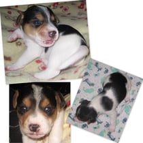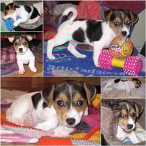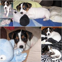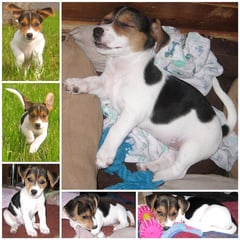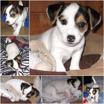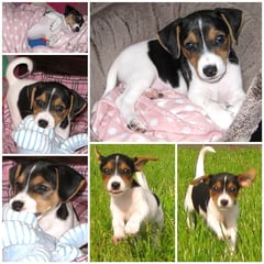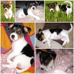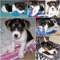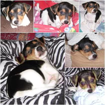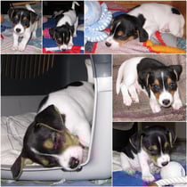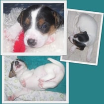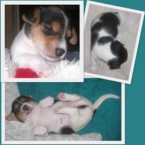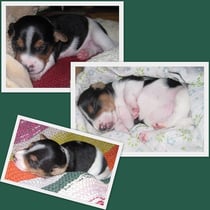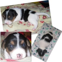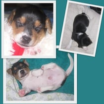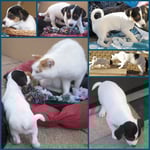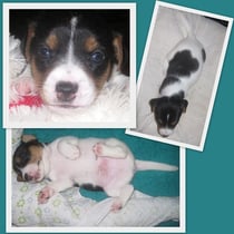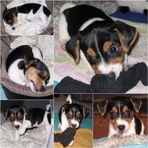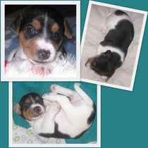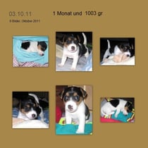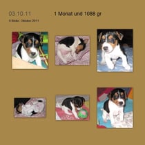 Links 24.09.11 bin 3 Wochen, die Zähnchen gucken hervor u. wiege stolze 826 gr. Mitte 1 Monat, lustiger, aktiver, sehr anhänglicher Cooper. Rechts 15.10.11 Cooper, 6 Wo u. 1466 gr.