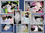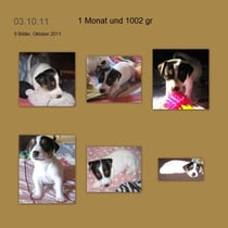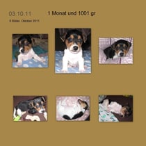 Links mit 1 Woche u. 398 gr., heisse Miles. Mitte 12 Tage 15.09.11, habe die Augen offen u. wiege 544 gr. Rechte Collage vom 19.09.11, hebe das Köpfchen mit 16 Tg. und bin 655 gr.