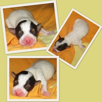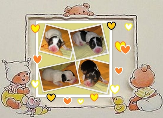 Links mit 1 Woche u. 430 gr. heisse Cooper. Mitte 12 Tage 15.09.11, habe die Augen offen und wiege 577 gr. Rechte Collage vom 19.09.11 hebe das Köpfchen mit 16 Tg u. bin 676 gr.