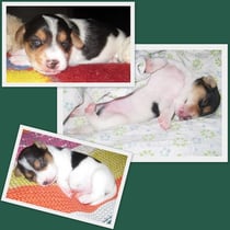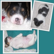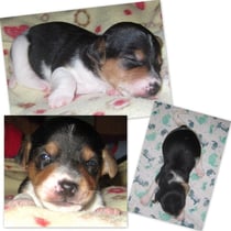 3. Welpe Junge Tricolor, geboren um 00.47 Uhr, Gewicht 226 gr. Fotos li von 12.30 Uhr.