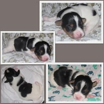 5. Welpe Junge Tricolor, geboren um 01.40 Uhr, Gewicht 208 gr. Fotos li von 12.30 Uhr.