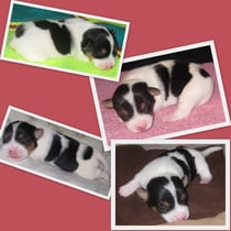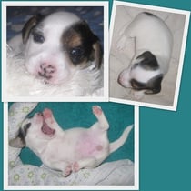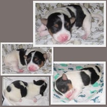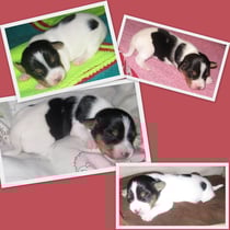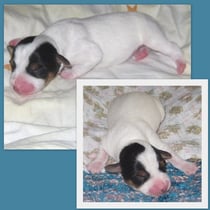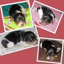 4. Welpe Junge Tricolor, geboren um 01.11 Uhr, Gewicht 214 gr. Fotos li von 12.30 Uhr.