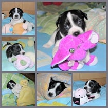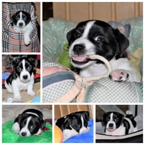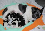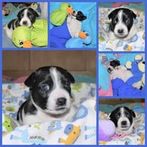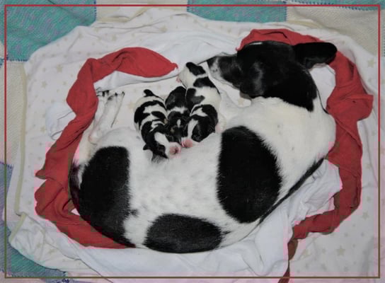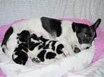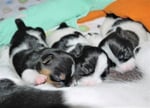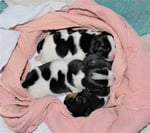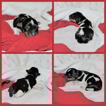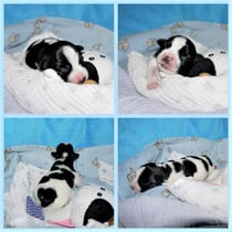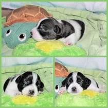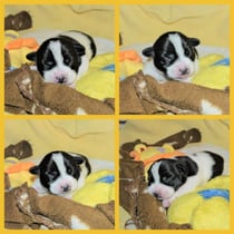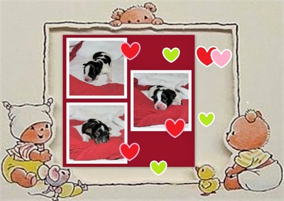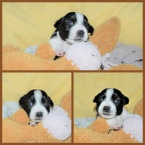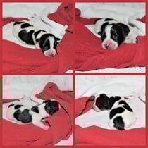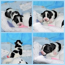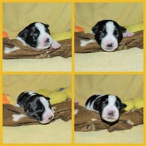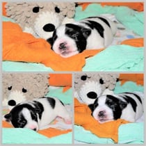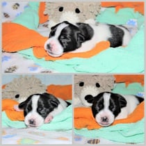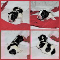 2. Welpe Junge weiss - schwarz, geb. um 14.24Uhr, Gew. 225gr. Fotos li von 22.50 Uhr.