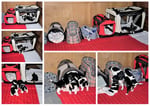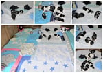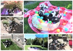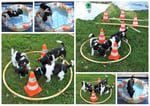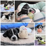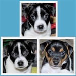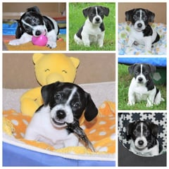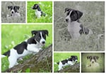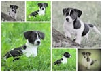 1. Welpe Junge weiss - schwarz, geb. um 13.40Uhr, Gew. 222gr. Fotos li von 22.50 Uhr. Mitte vom 10.07.22, 2 Tage jung, Gewicht 303gr. Re Collage vom 13.07.22 5 Tage und 435gr.