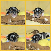 3. Welpe Junge tricolor, geb. um 17.17Uhr, Gew. 212gr. Fotos li von 22.50 Uhr.