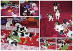 3. Welpe Mädchen Tricolor, geboren um 06.20 Uhr, Gew. 170 gr. Fotos li von 17.45 Uhr. Mitte vom 13.10.19, 2 Tage jung, Gewicht 250gr. Re Collage vom 16.10.19 5 Tage und 366 gr.