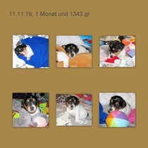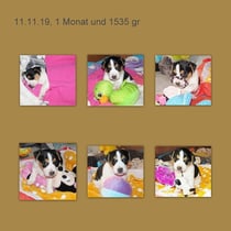 Links 01.11.19, bin 3 Wochen, die Zähnchen gucken hervor u. wiege 1165 gr. Mitte 1 Monat, aufmerksame, lauffreudige, sehr interessierte Peppa. Re CL 22.11.19 Peppa, 6 Wo u 1915gr.