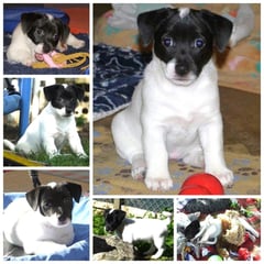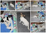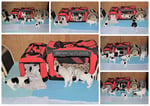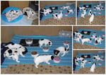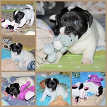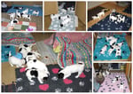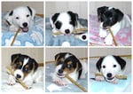 2. Welpe Junge weiss - schwarz, geb. um 21.44Uhr, Gew. 205gr. Fotos li von 12.40 Uhr. Mitte vom 13.08.23, 2 Tage jung, Gewicht 270 gr. Re Collage vom 16.08.23, 5 Tage u. 408 gr.